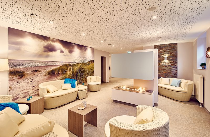 Auch im DJH Resort Neuharlingersiel hat sie darauf geachtet: In der hauseigenen Sauna (hier erfahrt Ihr mehr dazu) liegt man bequem im Ruheraum auf einer Liege und fühlt sich dank der Einrichtung und der großen Fototapete fast wie am Strand.