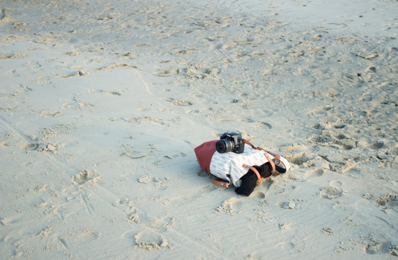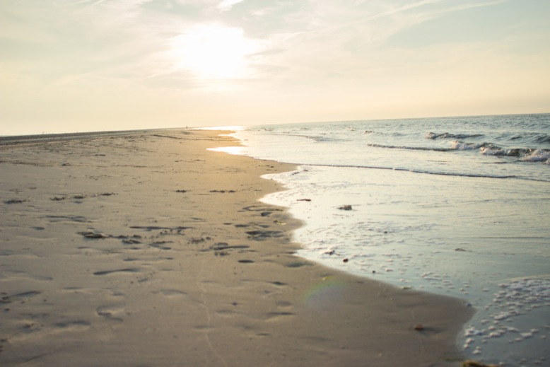 Und der erste Eindruck ist wunderbar. Der Sand unter den Füßen ist warm, der Wind weht eher frisch als stürmisch und die späte Nachmittagssonne eignet sich perfekt als Fotokulisse. Wir können nicht anders und müssen wenigstens mit den Füßen ins Wasser. Auf jeden Fall ein paar Grad zu kalt. Wir setzen uns in die Sonne, reden und schauen den Wellen zu. Ab und an traben Pferd und Reiter an uns vorbei, die das perfekte Motiv hergeben.