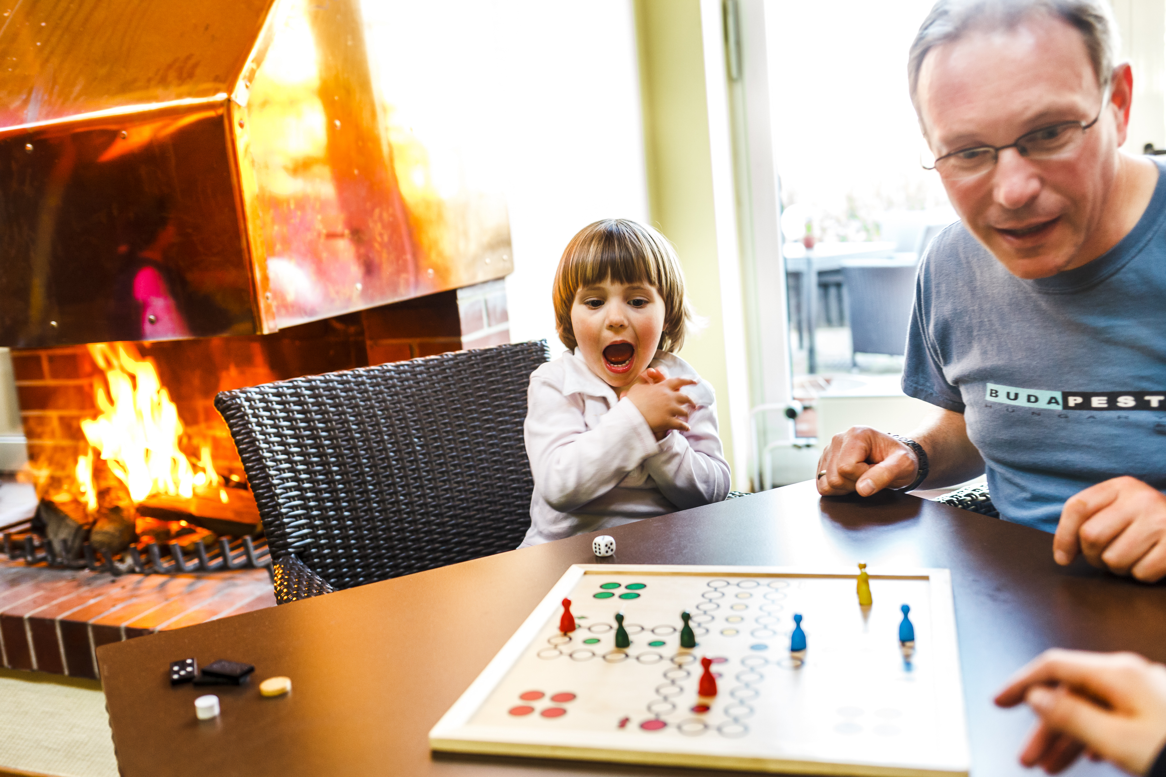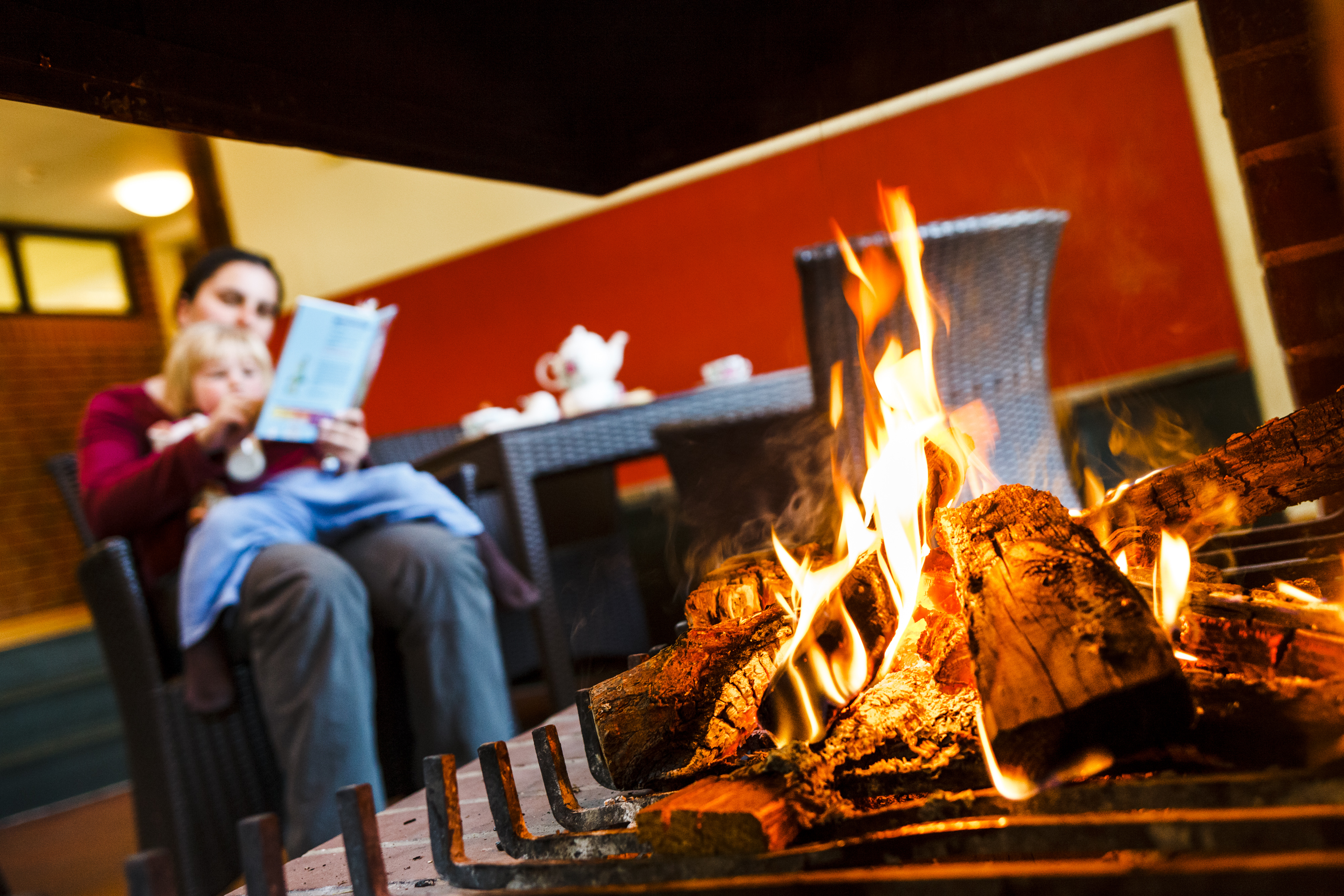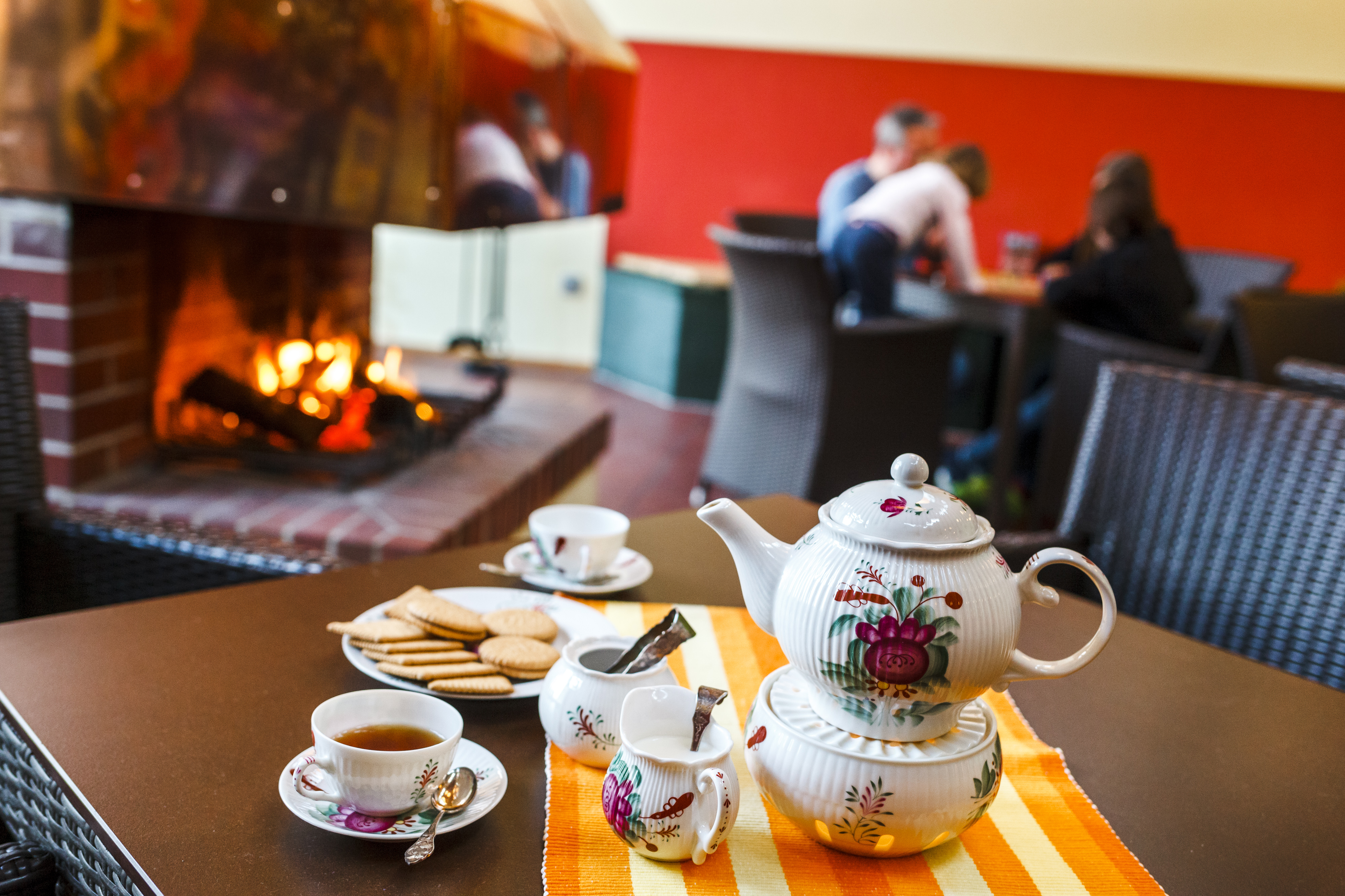 Direkt darunter sorgt an kalten Tagen der Kamin in der Lobby für gemütliche Spiel- oder Teestunden am lodernden Feuer.