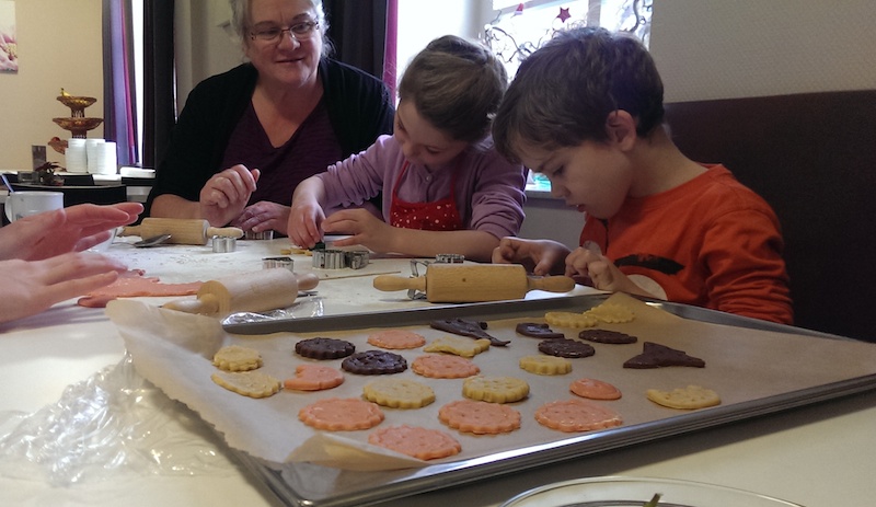Es ist ein schönes vorweihnachtliches Beisammensein, das jedes Jahr im Dezember in der Jugendherberge Leer den Seminarraum oder auch den Speisesaal in eine Weihnachtsbäckerei verwandelt. Das gemeinsame Backen gehört zum Familienprogramm „Ostfriesische Weihnachten„, bei dem Omas, Papas, Tanten, Kinder und Geschwister zusammen ein Wochenende in der Jugendherberge Leer verbringen, um die Adventszeit in der festlich geschmückten Stadt mit ihrem lichterreichen Weihnachtsmarkt zu genießen. Auch in der historischen Jugendherberge im Herzen der Altstadt ist der Zauber der Festtage zu spüren – der Duft der selbstgebackenen Plätzchen gehört dazu. Gestern war es wieder soweit: es wurde geknetet und gekleckst.