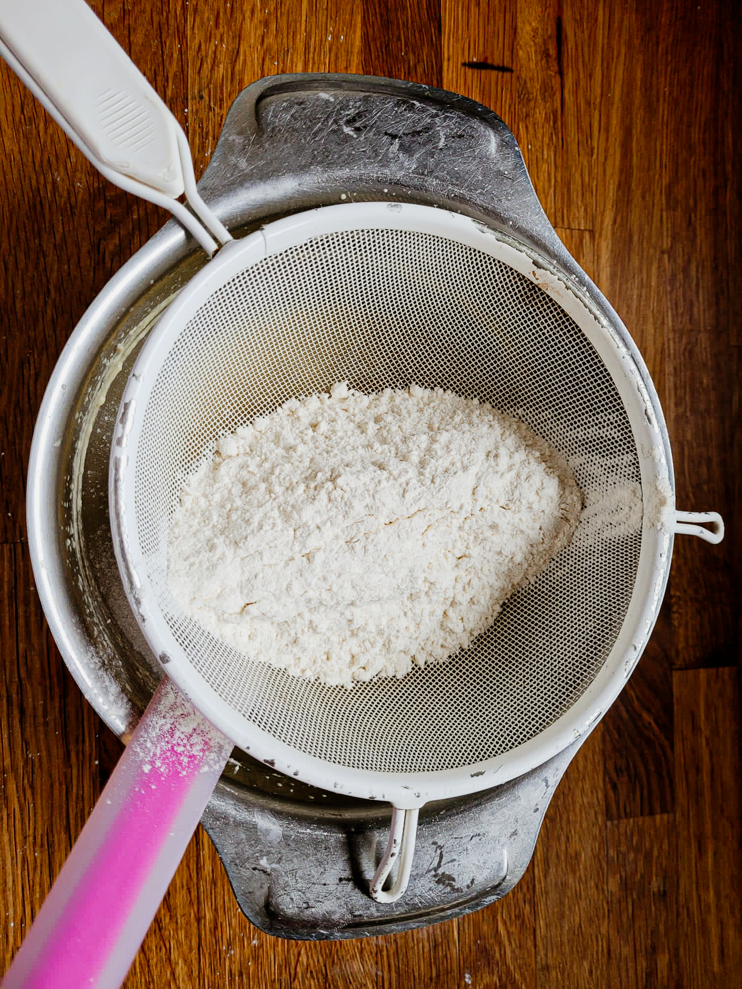 Goldgelb ausbacken, herausnehmen und mit Puderzucker bestreuen.