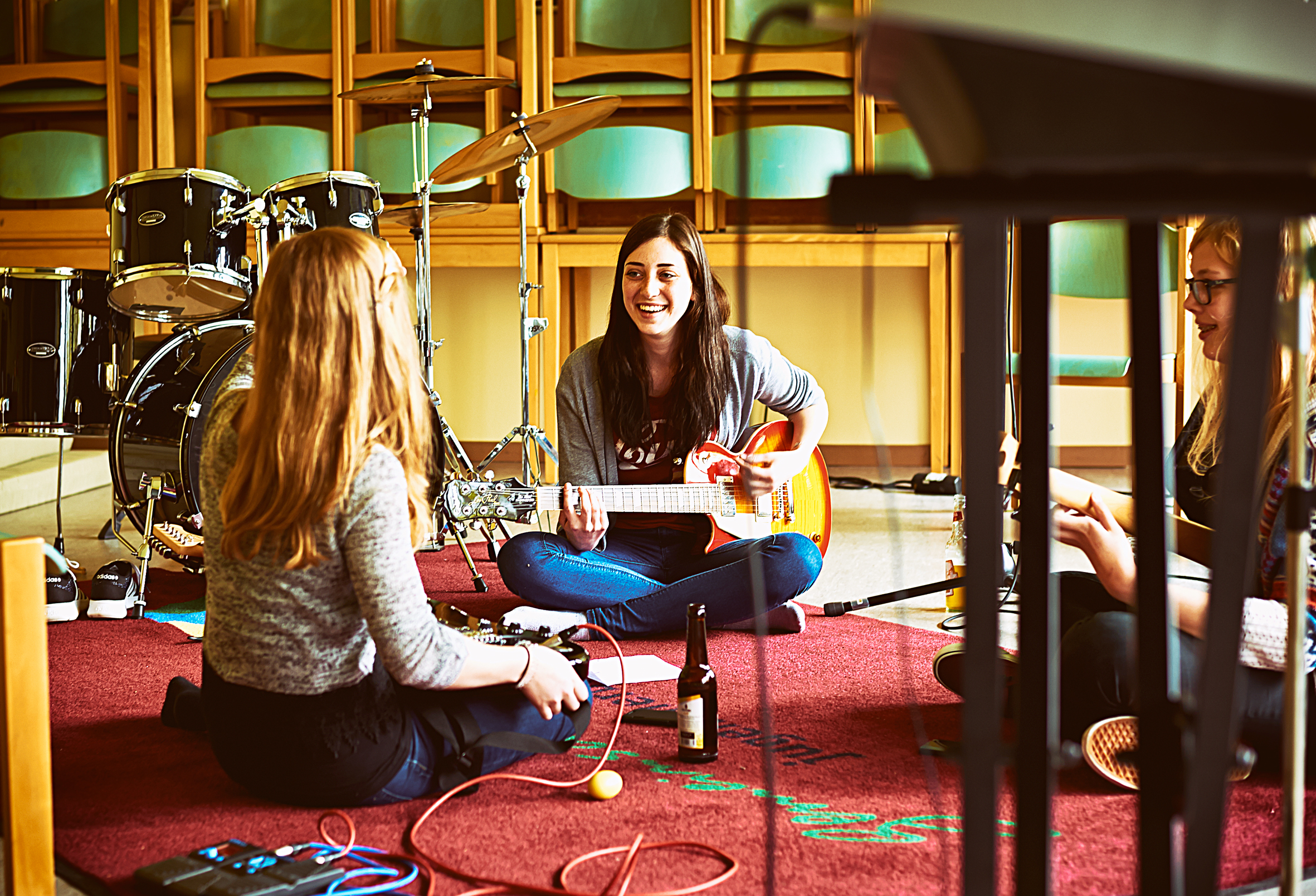 Die vier Coaches vermitteln Dir in verschiedenen Workshops ihr Wissen und ihre Erfahrungen und stehen außerdem bei brennenden Fragen mit Rat und Tat zur Seite. Die Workshops der OLB MUSIK-CAMP Soundwerkstatt teilen sich thematisch in die Bereiche Band, Songwriting & Composing, Social Media und Recording auf. Du wirst eine Menge interessanter Elemente des Musizierens kennen lernen und einiges sogar direkt umsetzen können. Dazu kannst Du dich im Soundtruck des MusikZentrums Hannover kreativ austoben, eigene Songs aufnehmen oder sogar eine DJ-Party veranstalten. Um die Verpflegung, Deinen Schlafplatz und Proberäume musst Du Dir keine Gedanken machen: Darum kümmert sich die Jugendherberge. Du kannst Dich also voll und ganz auf Deine Musik konzentrieren – so wie die großen Stars, bevor sie ihren nächsten Hit schreiben.