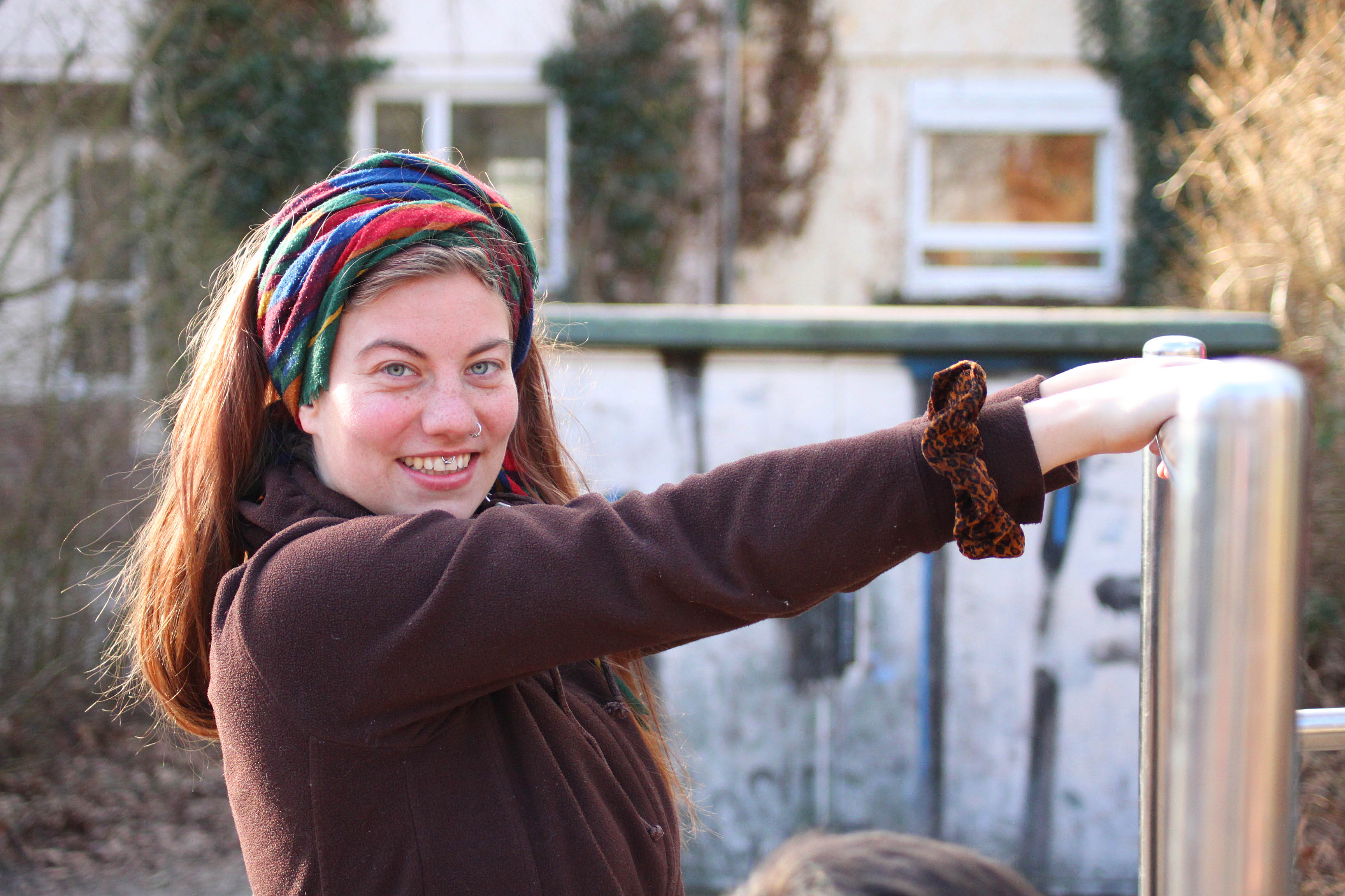 Dieses Mal aber geht es gleich weiter, rüber zum wenige Hundert Meter entfernten Spielplatz. Lena hat zwei der jungen Mädchen an der Hand. Stopp‘, ruft sie dann, und die beiden merken, dass sie anhalten sollen. Lena lächelt, wartet kurz, und ruft ‚Los!‘. Die Kinder lachen, und dann spielen sie das Spiel den ganzen Weg lang, machen große Ausfall- und kleine Mäuseschritte. Und ganz nebenbei lernen sie die Sprache. Man braucht viel Spontanität‘, sagt Lena, die früher bei den Pfadfindern war und Kunsttherapie studiert hat. Vor allem, wenn die Altersunterschiede groß sind, wird es schwierig, alle für die gleichen Spiele zu begeistern. Und manche Kinder brauchen mehr Aufmerksamkeit als andere. Aber genau das finde ich spannend: zu sehen, wie ich die Aufmerksamkeit der Kinder gewinnen und ihre Energie sinnvoll lenken kann.‘ Deswegen sei das Teamer-Dasein auch eine sehr kreative Arbeit. Wir nehmen, was da ist, gebrauchen es sinnvoll und können dabei unsere eigenen Ideen einbringen, um die Kinder zu fördern.‘