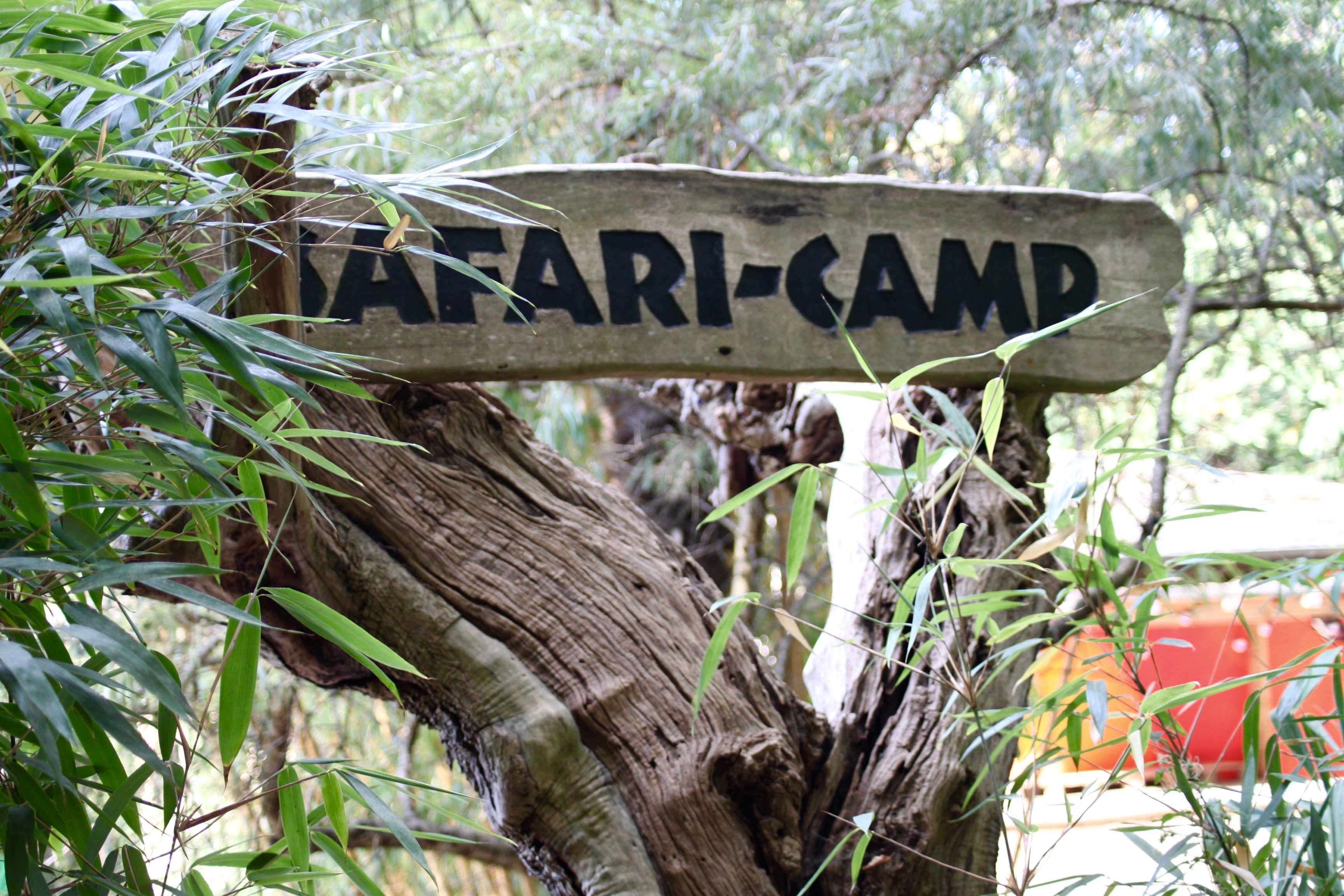 Wir folgen dem Rundgang. Unter den Baumwipfeln geht es als erstes zum Safari-Camp Samburu. Der Imbiss mit Aussicht hat zwar jetzt im Herbst geschlossen, aber hier kann man es sich wunderbar für einen ersten Snack (zum Beispiel mit dem Lunch-Paket von der Jugendherberge) an Holztischen gemütlich machen – und während des Essens den Giraffen beim Stolzieren zusehen.