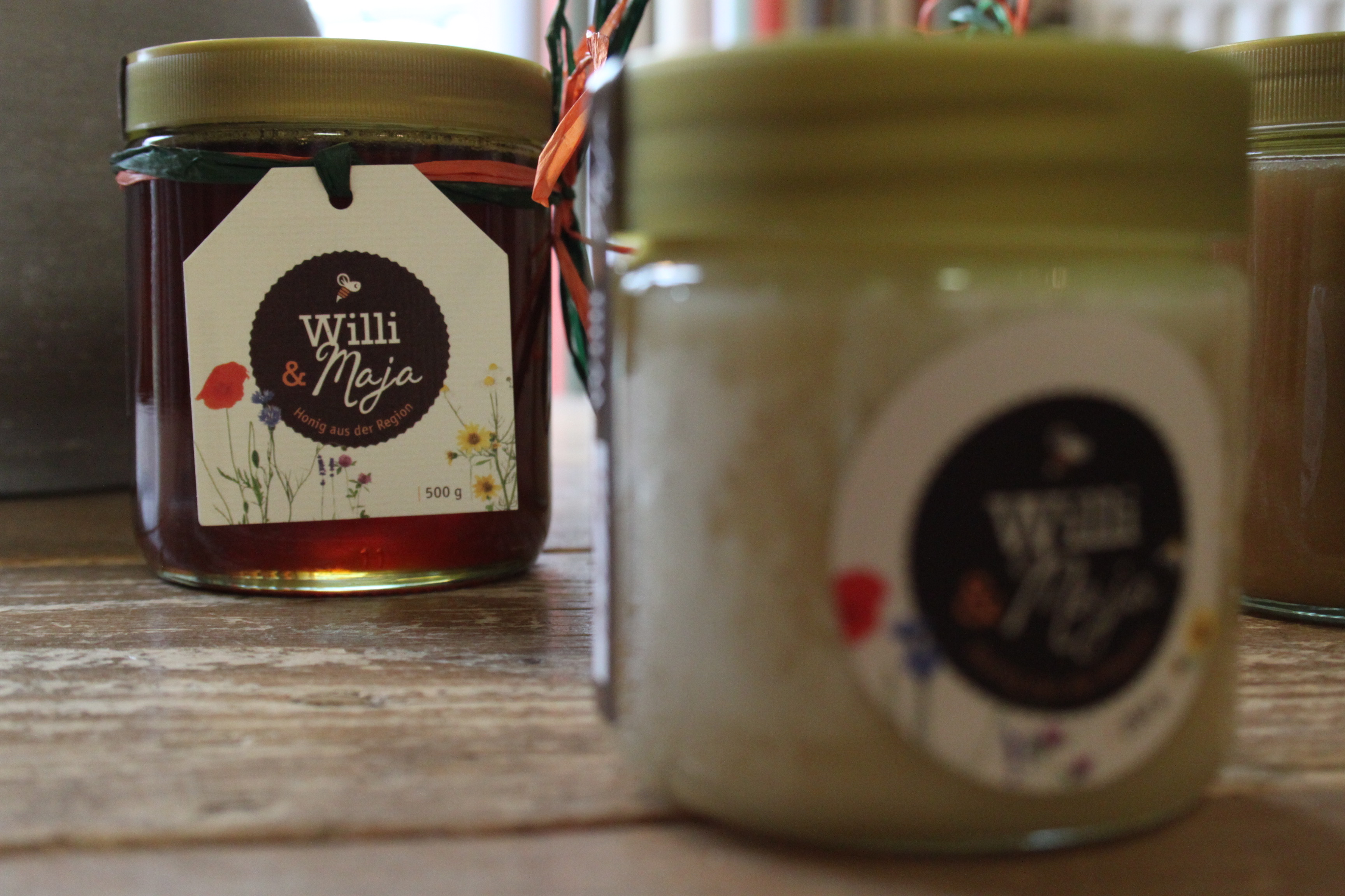 Den Honig, den sie selbst produziert, verkauft sie unter dem Namen Willi & Maja. Per Hand füllt sie die Gläser ab, bei der Markenentwicklung und -gestaltung hat ihr ihre Nachbarin geholfen. Das Emblem ziert auch ihr Auto, und mit den Produkten ist sie regelmäßig auf Märkten unterwegs. Die Nachfrage ist der Wahnsinn‘, freut sich die 64-Jährige. Im vergangenen Jahr habe ich mehr als 250 Gläser verkauft.