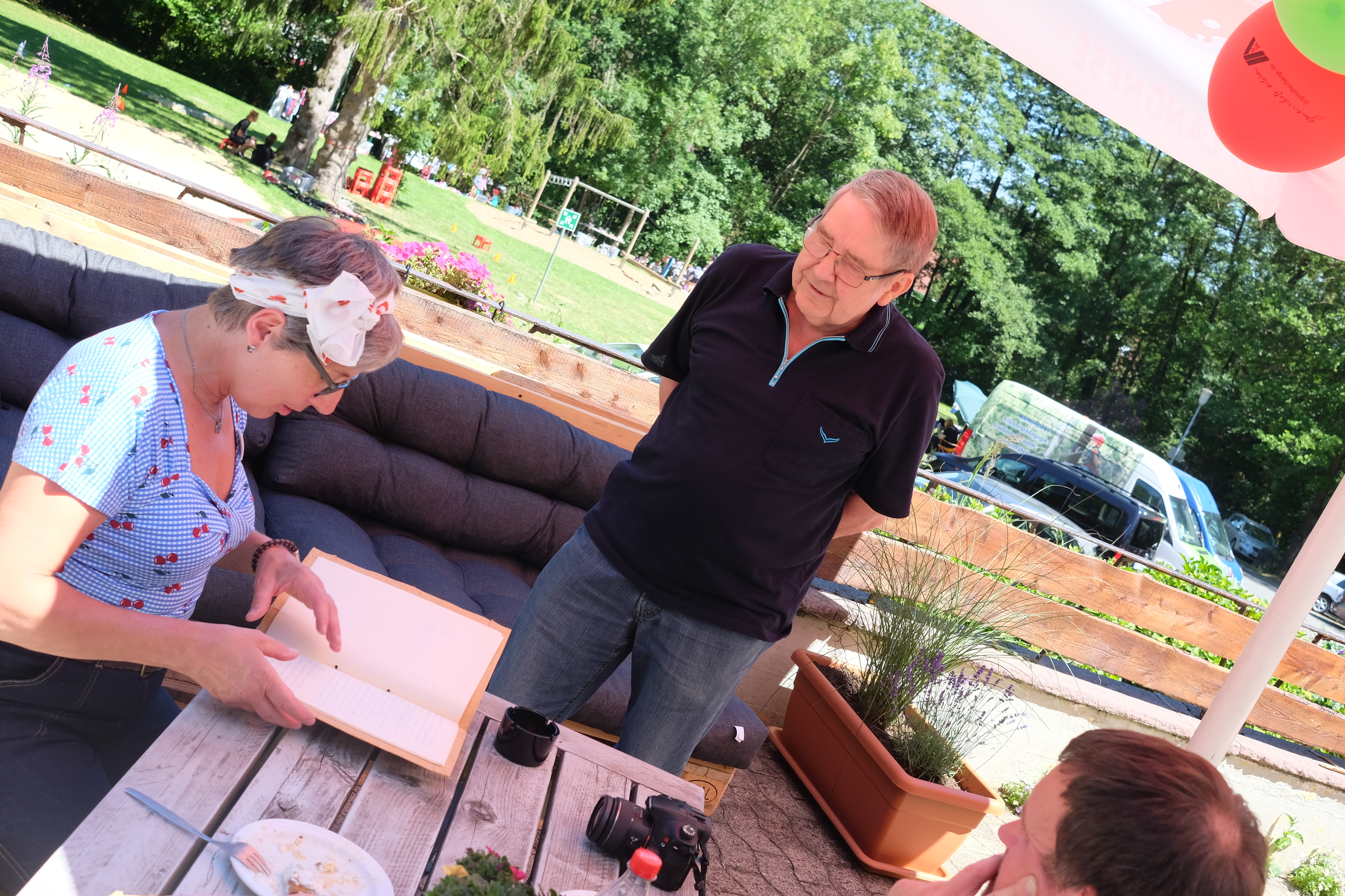 schreibt die Praktikantin, und sorgt damit bei Sylvia Speckbrock für ein erstauntes Gesicht. „Das hat sich bis heute nicht verändert“, sagt die Hausleiterin. „Schön, dass unser Slogan ‚Gemeinschaft erleben‘ damals schon so erfahrbar war.“ Sie dreht sich zu Helmut Heissenberg, drückt ihm zum Dank herzlich die Hand. „Kommen Sie mit Ihrer Frau bitte unbedingt einmal auf ein Stück Kuchen vorbei, wenn es Ihnen passt.“